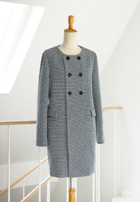 ワンピースのようなデザインのツイードコート。着るだけでわくわくしそうです。