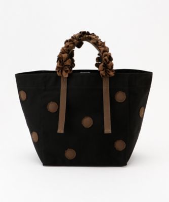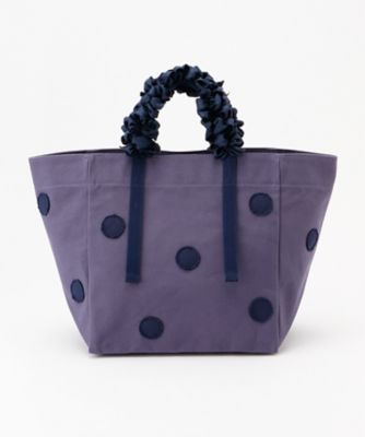 カジュアル感と甘さの絶妙なバランスが魅力の<ラドロー>のトートバッグです。ハリのあるキャンバス地にドット柄を落とし込み、クシュクシュッとしたデザインのグレープハンドルは見た目がおしゃれなだけでなくしっとりと手に馴染んで持ちやすいのもポイント。幅広のマチが付いた大きめサイズなので、荷物が多い日でも安心してお使いいただけます。