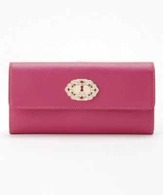 <ANNA SUI(アナ スイ)>より、口金式の小銭入れが付いた「ルコント」シリーズの長財布です。フラップ部分に配した鍵穴のメタルパーツがエレガント。シボ感のある柔らかな素材を使用しており、上品な雰囲気が漂います。フラップ裏にオープンポケット、札入れの手前にファスナーポケットを備えた機能的な作りも魅力。たっぷりと収納できて実用的です。