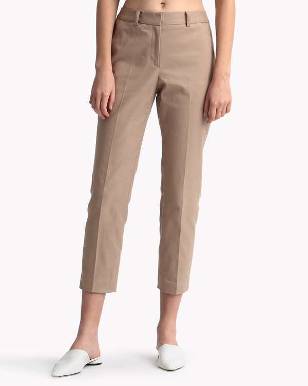 ベーシックなテーパードラインの定番クロップドパンツ。スラッシュポケットを採用し、脚のラインが美しく見えるよう形もアップデートしたクリーンな印象の一本です。幅広いシーン、コーディネートに重宝するスタイル。カシミヤタッチの上質なコットンを使用した2WAYストレッチ素材で仕立てました。キックバックに優れた非常に履き心地の良い素材です。