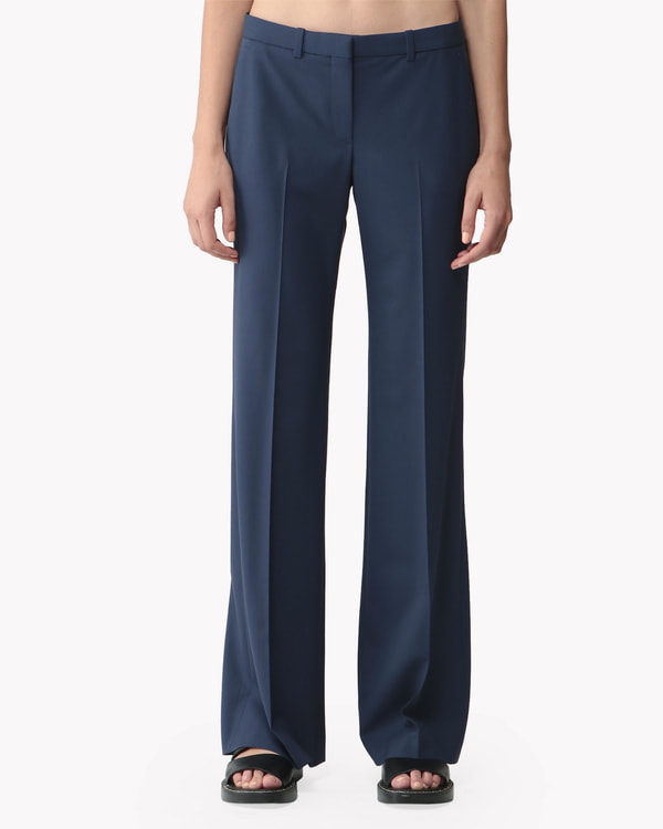 昨秋より継続のフィット&フレアパンツ。やや浅めの股上や、裾に向かってほど良く広がるフレアシルエットが特徴です。セオリーらしい、すっきりとしたクリーンな一本。上質なエクストラファインメリノウールを使用し、イタリアンアルプスの麓にある100年以上の歴史がある紡績工場で最新の省エネ技術を駆使して織り上げた、Theory特注のトレーサブルなスーツ素材です。トレーサブルとは追跡可能という意味で、原産地まで辿ることができます。