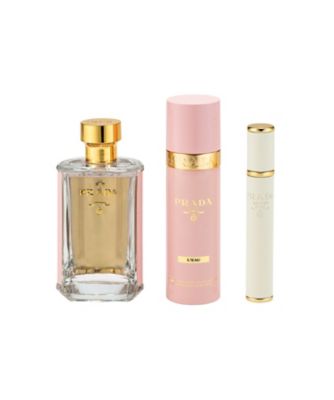 「プラダ フェム ロー」のオーデトワレ現品に、ボディミスト、サフィアーノ レザー調の携帯ボトルに入った「プラダ フェム」をセットに。