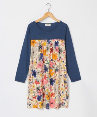 花柄が懐かしいワンピース。パンツとあわせてロングトップスとしても着こなしても素敵です。