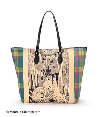 A4サイズがすっぽり入るキャンバス生地のバック。サイドの伊勢丹チェックとムーミンのバランスが素敵です。バックの底の部分にムーミンのロゴが。