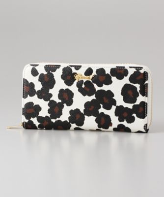 <MUVEIL(ミュベール)>レオパード ラウンドジップ長財布 ホワイト/イエロー