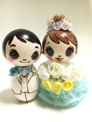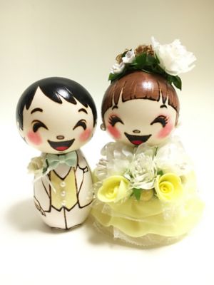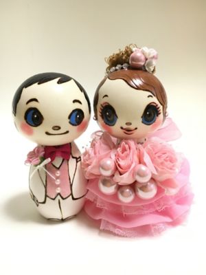 アナスイのコラボの『ウェディングこけし』です。他にはないかわいらしさで、ご結婚のお祝いとして喜んでいただけそうです。