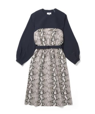 90~00年代アウトドアスポーツウエアからのインスピレーションでデザインされたドレスは、無地とパイソンプリントのブロッキングが特徴です。