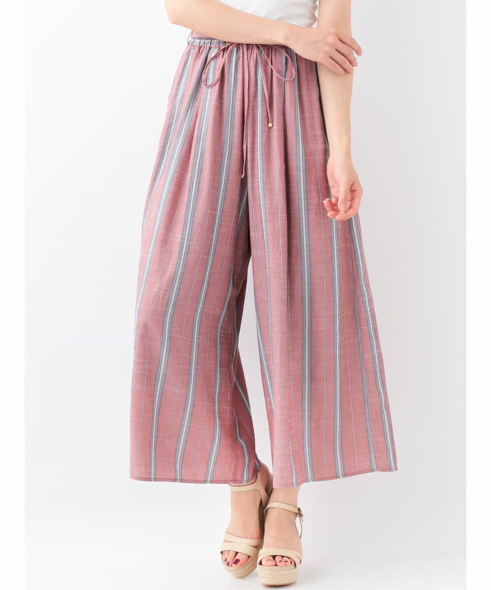 肌触りが良く柔らかな風合いが特徴の麻調素材を使用、夏らしいマルチストライプのワイドパンツです。