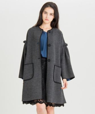 着心地の良いニットジャガードを使った、秋の始まりにぴったりなリバーシブルのニットコート。表はフリルになった袖のボリューム感と大きなポケットが愛らしいシルエットのデザインに、裏はグログランリボンでパイピングされたシックなデザインとなっており、さまざまな表情で楽しむことができます。軽やかな着心地で気軽に着られるニットコートはシーズンの変わり目に心強いアイテムです。